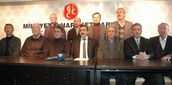 İl Teşkilatında basın toplantısı düzenleyen ilçe başkanları, ülkücü hareketin zarar görmemesi için görevlerinin başında kalacaklarını açıkladı.
