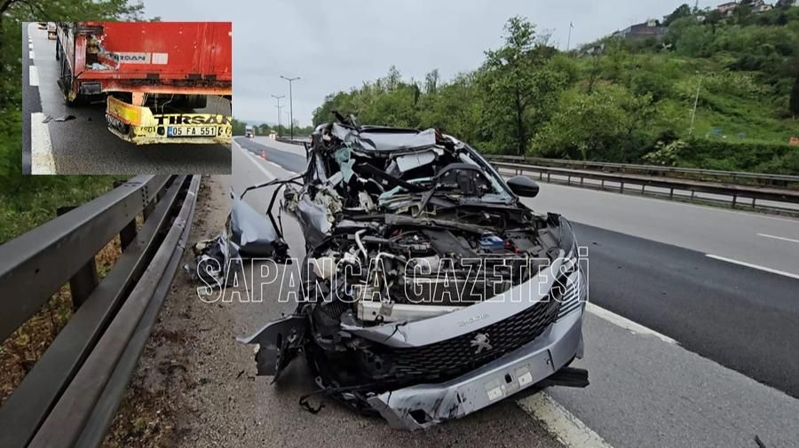 Sapanca İlçesinde, Tır'a arkadan çarparak paramparça olan otomobilin sürücüsü hafif şekilde yarandı.